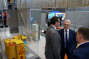 Экспозицию холдинга на ПМГФ осмотрели Председатель Совета директоров ПАО «Газпром» Виктор Зубков и заместитель Председателя Правления ПАО «Газпром» Виталий Маркелов.