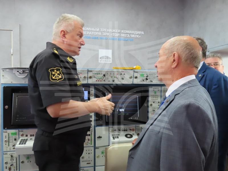 Объединенный стенд холдинга посетил главнокомандующий Военно-морским флотом России адмирал Николай Евменов. Он внимательно ознакомился с морской версией зенитного ракетного комплекса ближнего радиуса действия «Тор», который уже через несколько лет будут устанавливать на новые российские корабли. Главкому ВМФ также показали автономный тренажер командира и оператора боевых машин 9Ф678М изделия 9А331МЭ.
