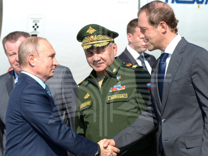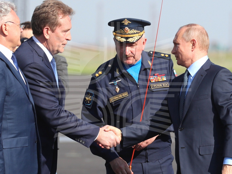 При посадке на аэродром ГЛИЦ самолёт Президента сопровождала группа из шести истребителей пятого поколения Су‑57. Позднее Владимир Путин кратко пообщался с лётчиками, пилотировавшими машины.