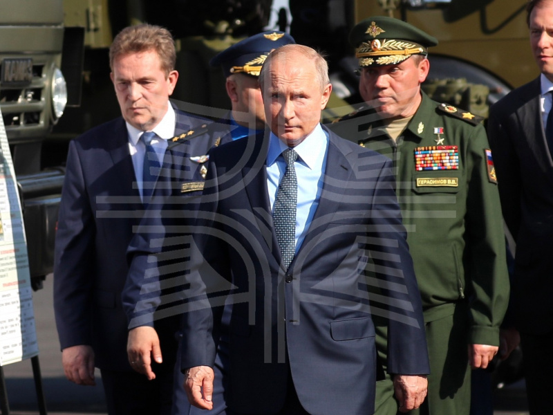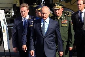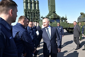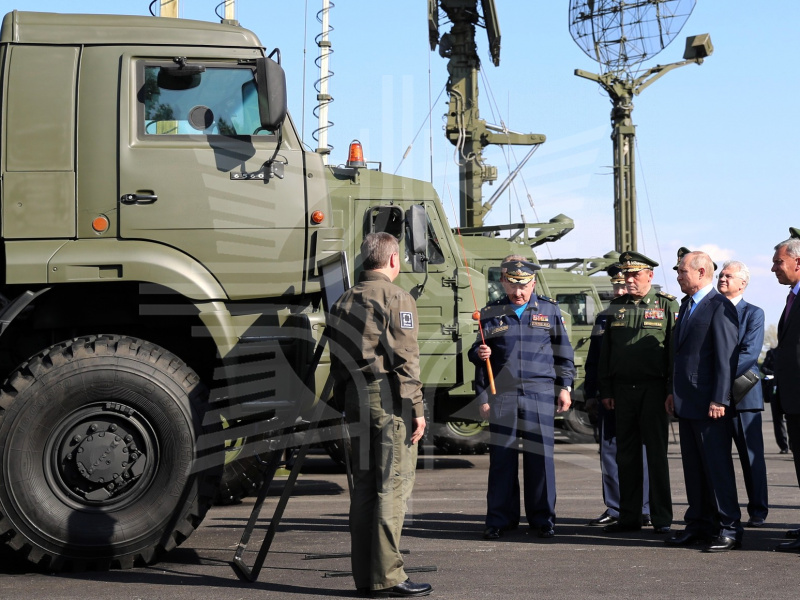 Глава государства осмотрел современные и перспективные образцы авиационной техники, в том числе ракетный комплекс «Кинжал», самолёты «МиГ» и «Су», беспилотные летательные аппараты «Охотник‑Б», «Иноходец», «Корсар», «Форпост‑Р». Верховный Главнокомандующий также ознакомился со средствами противовоздушной обороны – радиолокационными станциями «Каста 2‑2В», «Подлёт» и РЛК‑МЦ «Валдай», комплексом средств автоматизации «Фундамент‑М», боевыми машинами ЗРПК семейства «Панцирь», ЗРК С‑350 «Витязь», боевой машиной «Тор‑М2У», самоходной огневой установкой «Бук‑М3», пусковой установкой ЗРК С‑300В4.
