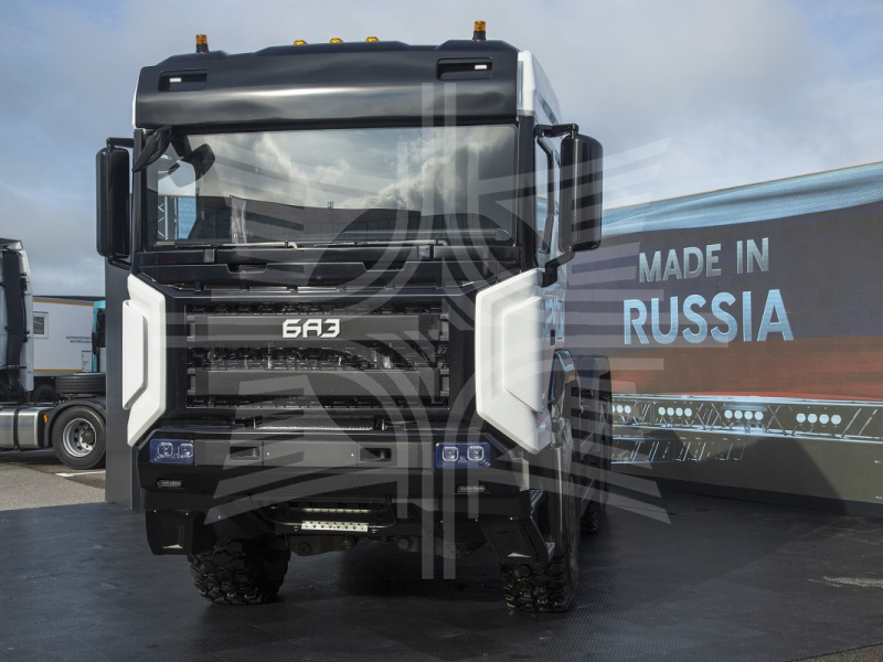 На открытой выставочной экспозиции Концерн впервые провел открытую презентацию габаритного грузового шасси БАЗ-S36A11 с колесной формулой 6х6. Серийные модели таких автомобилей предназначены для использования на дорогах общего пользования всех категорий и на бездорожье. Высокая проходимость машины достигается за счет использования специально разработанных осей с независимой подвеской, каждая из которых обладает грузоподъемностью 12 тонн. Полная масса составляет 35 700 кг, снаряженная масса – 13 600 кг, грузоподъемность – 22 100 кг. Перспективный модельный ряд на основе базовой платформы БАЗ-S36A11 включает в себя широкую линейку грузовых полноприводных бескапотных автомобилей повышенной проходимости с колесными формулами 4х4, 6х6(4), 8х8(4) и 10х10. Все основные узлы и агрегаты автомобиля – отечественного производства. Опытный образец автомобиля получил положительные оценки автоэкспертов и потенциальных потребителей, вызвал немалый интерес на отечественном автомобильном рынке, а по итогам форума – и у представителей государств африканского континента.