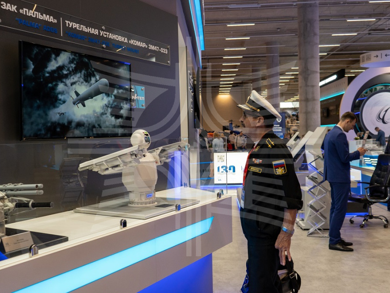 Особый интерес посетителей салона, зарубежных гостей, а также журналистов вызвал макет турельной установки «Комар» 3М47-01Э и ее модернизированной версии 3М47-03Э. Обновленная версия «Комара» является эффективным средством борьбы не только со средствами воздушного нападения, но и с беспилотными морскими дронами. Это стало возможным благодаря тому, что установка 3М47-03Э помимо ракет 9М342 типа «Игла-С» оснащена ракетами 9М120-1 типа «Атака». При этом 3М47-03Э дополнена системой гиростабилизации, что позволяет адаптировать применение ракет в морских условиях. Сопровождение цели и пуск ракет могут осуществляться как в автоматическом, так и в ручном режимах. Масса комплекса не превышает 1500 кг.