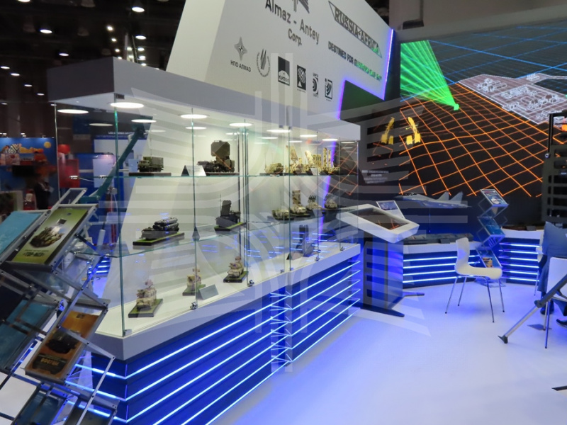 На объединенном стенде Концерна были продемонстрированы основные и перспективные направления деятельности холдинга в части производства новых типов продукции военного назначения и модернизации ранее выпущенной и находящейся в эксплуатации техники.