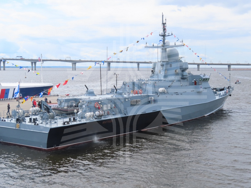 В демонстрационной программе Салона были представлены корабли из состава ВМФ России, среди которых фрегат проекта 22350 «Адмирал Касатонов», оснащенный крылатыми ракетами «Калибр» и зенитным ракетным комплексом «Полимент-Редут», а также малый ракетный корабль проекта 22800 «Мытищи» и малый ракетный корабль проекта 21631 «Серпухов», вооруженные крылатыми ракетами «Калибр-НК».
