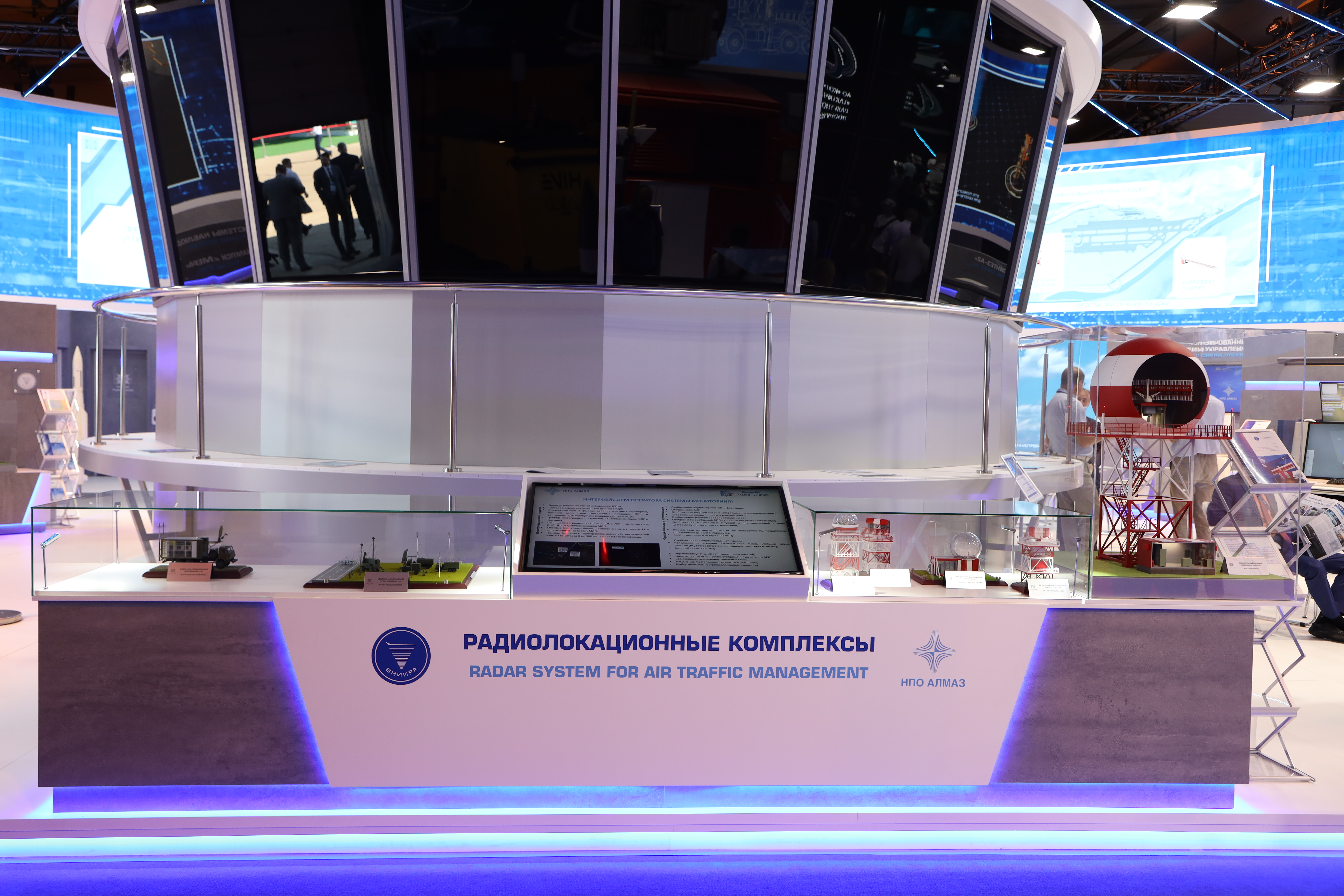 Большой интерес у посетителей экспозиции Концерна вызвали такие новинки как охотник за дронами «Волк-18», радиолокационно-оптический комплекс обеспечения безопасности объектов и нейтрализации беспилотников «ROSC-1», мобильный малогабаритный твердотельный метеорологический радиолокатор «ДМРЛ-3», радиолокационная станция (РЛС) обзора лётного поля Х-диапазона «Алькор», широкозонная и аэродромная многопозиционная система наблюдения, оборудование автоматического зависимого наблюдения (АЗН-В).