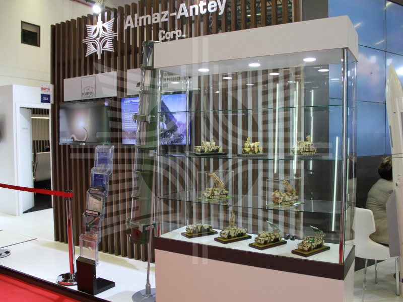 На стенде Концерна в виде моделей, видеороликов и печатной продукции были представлены зенитная ракетная система С-400 «Триумф», зенитные ракетные комплексы (ЗРК) «Викинг», «Бук-М2Э» и линейки «Тор», а также макеты входящих в их состав зенитных управляемых ракет.