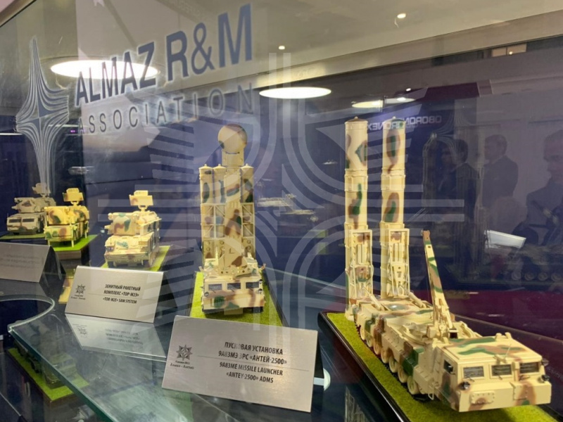 На объединённом стенде Концерна помимо общей информации о выпускаемых изделиях в виде моделей были представлены ЗРС С-400 «Триумф», С-300ВМ «Антей-2500», ЗРК «Бук-М2Э», «Тор-М2Э», «Тор-М2К», «Тор-М2КМ», ЗПРК «Тунгуска-М1» и ЗСУ-23-4 «Шилка-М4».