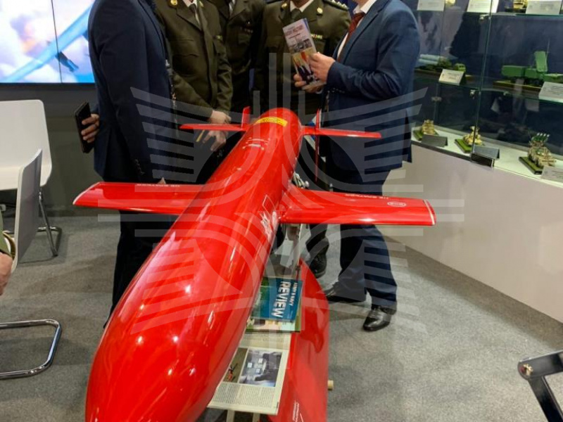 В разделе учебно-тренировочных средств ПВО экспонировался натурный образец УМТК 9Ф6021Э «Адъютант» в составе БЛА с турбореактивным двигателем.
