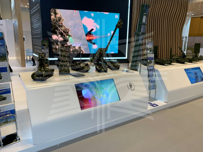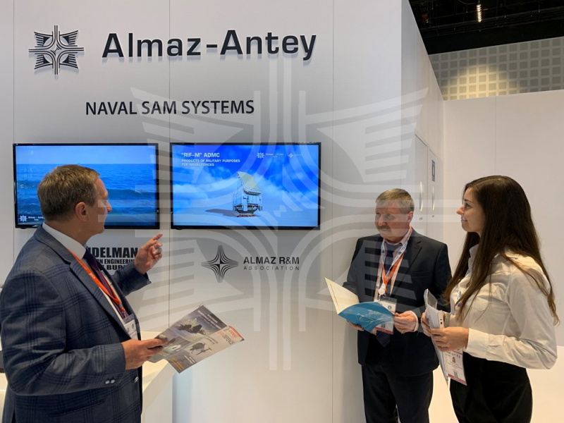 На отдельных мониторах демонстрировалась информация о продукции, предназначенной для ПВО ВМФ, в том числе ЗРК морского базирования «Риф-М» и «Штиль-1», ЗАК «Пальма» и ТУ «Комар».