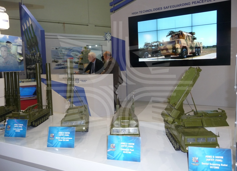 На стенде Концерна были размещены модели и рекламные плакаты по основным видам продукции: ЗРС С-300ВМ "Антей-2500", ЗРК "Бук-М2Э"; ЗРК "Тор-М2Э"; ракеты интегрированных ракетных систем надводных и подводных кораблей Club-S/-N; АСУ "Фундамент-2Э", турельные установки "Гибка" и "Комар", РЛС "Пума".