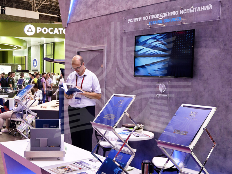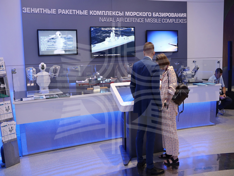 На площадке у демонстрационного центра Концерна были представлены: пусковая установка автоматизированного ЗРК «Сосна», универсальный мишенно-тренировочный комплекс «Адъютант» с широким спектром разноплановых мишеней, новейший межвидовый метеорологический радиолокационный комплекс 1Б77 большой дальности. В павильоне демонстрационного центра посетители форума смогли увидеть масштабные модели и видеоролики о продукции военного назначения Концерна, а также видео-макетную презентацию морского зенитного ракетного комплекса «Ресурс», которая ранее не демонстрировалась.