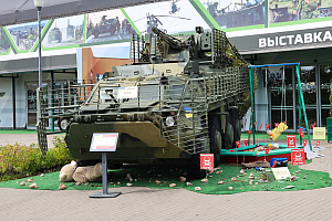 Кроме того, перед павильоном «В» был впервые представлен подвижный разведывательный пункт ПРП-5 на гусеничном шасси БМП-3. Он предназначен для ведения разведки объектов противника и обслуживания стрельбы наземной артиллерии в различных погодных условиях. ПРП-5 способен осуществлять поиск, обнаружение, распознавание и определение координат открытых и замаскированных, одиночных и групповых, движущихся и неподвижных объектов противника (целей), обслуживание стрельбы артиллерии днем и ночью, разведку местности, сопровождение колонн.