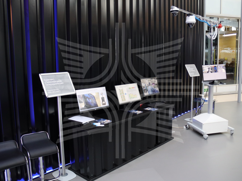 Концерн также продемонстрировал высокотехнологичное медицинское оборудование для рентгенодиагностики, хирургии, терапии и реабилитации, - в частности, натурный образец универсального рентгенографического аппарата Р-600 «Униарм-флюорограф» (ООО «ВКО Медпром»), а также роботизированный экзоскелет ReMotion для реабилитации пациентов с нарушением подвижности нижних конечностей (АО «Волжский электромеханический завод»). В части цифровых решений в области здравоохранения «Алмаз – Антей» представил натурные образцы медицинской навигационной оптической системы «Мультитрек», системы телемедицинских консультаций «МультиТелеРад» и комплект «Телемедицина/Телерадиология» (ООО «ВКО КМТ»).